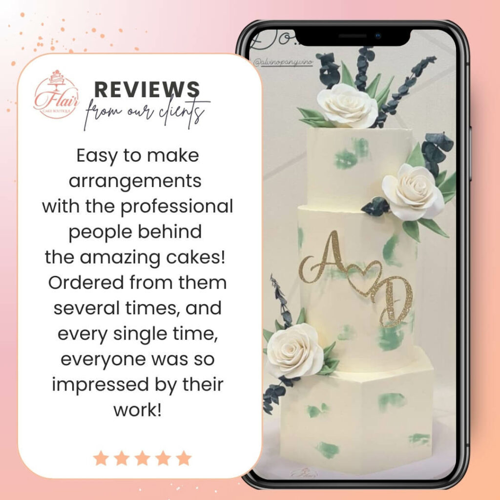 We take a personalized approach to helping our customers select the right products and designs for their special occasions. Our dedicated team is here to assist you every step of the way, ensuring that your experience with Flair Cake Boutique is nothing short of exceptional.