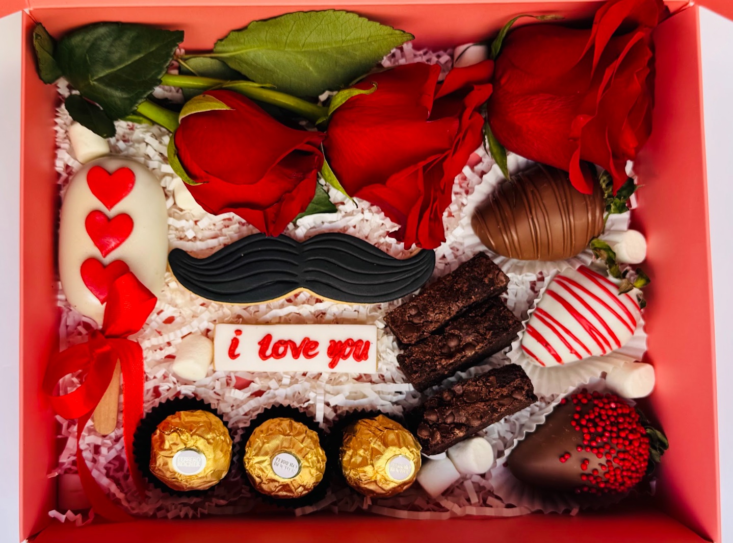 A treat that speaks louder than words. Packed with indulgent delights (Cakesicle, Brownies, Cookies, Fresh Strawberry coated with chocolate, Ferrero Rocher and marshmallows) that will show your love and make their heart (and taste buds) melt!